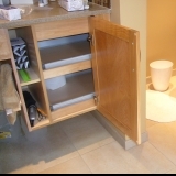 This is the 1st of 3 photos showing a custom modification to an ultracraft cabinet allowing easy disability access of items in vanity cabinet from WC.